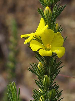 Local Guinea Flowers are prostrate to small shrubs. They have bright yellow flowers with 5 petals.